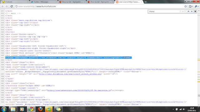 É simples: clique com o botão direito do mouse sobre qualquer parte do site que não seja um link ou imagem, se você estiver utilizando o Chrome por exemplo, aparecerá uma opção chamada “Exibir código fonte da página”. Clique nessa opção e você notará que uma página com o código fonte foi aberta. Dê um ctrl+F e procure pelo “iframe”. Abaixo disponibilizamos um blog que estava utilizando esses meios, como exemplo, basta você comparar o código apresentado com este e saberá se o mesmo está ou não utilizando esse recurso inapropriado: